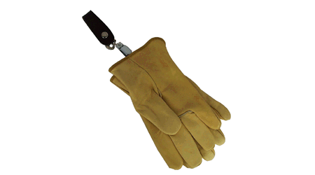 All-leather strap with a metal snap closure. Designed to hold your work gloves & attach to your belt.