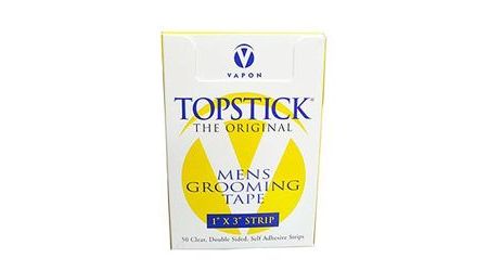 A clear, double-sided, medical adhesive tape in strips, used to hold hairpieces to the scalp. Hypo-allergenic, waterproof, high quality tape does not separate when removed. The back liner is slit for easy opening. Apply tape to the tape tab or perimeter of hairpiece. Can be applied to the entire hairpiece interior for a secure hold